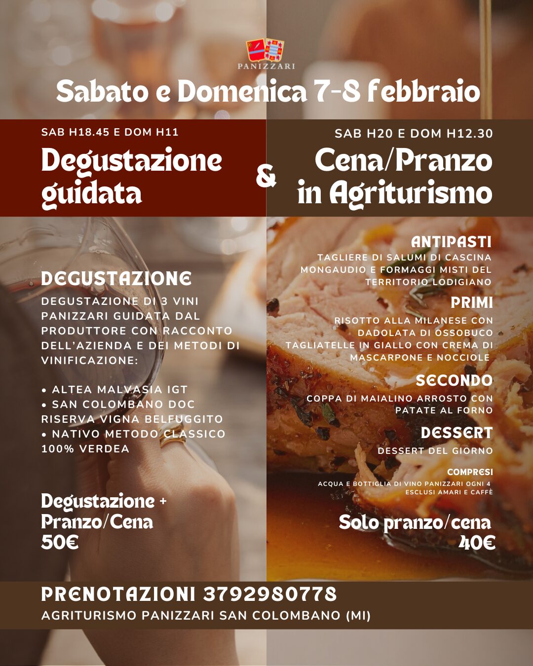 08Feb12:00Pranzo con degustazioneDomenica