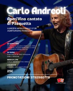 Apericena con tagliere di salumi nostrani e formaggi del Caseificio Carena, piccola panetteria, primo piatto caldo dell’Agriturismo e dessert. 1 bottiglia di vino Panizzari e di acqua ogni 2 persone, postazione in veranda vista vigneto e musica per tutta la sera.